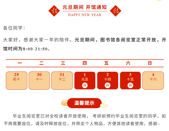 图书馆2026元旦开馆通知